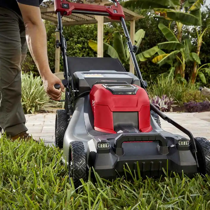 The lawn mower requires 2x 18V REDLITHIUM™-ION Batteries for operation. When paired with 2x 18V REDLITHIUM™-ION HIGH OUTPUT™ 12.0Ah Batteries (sold separately), the lawn mower delivers up to 60 minutes of runtime, allowing up to 2,000 m2 of cutting while removing 15 mm of grass at a 4.8 km/h self-propelled pace. With an infinitely variable self-propel speed dial, the lawn mower offers speeds between 0 – 6.4 km/h, and the Active Speed Management Paddle allows user to easily adjust their walking pace in operation while maintaining complete control of the lawn mower. The M18 FUEL™ 533 mm (21″) Self-Propelled Dual Battery Lawn Mower features a steel deck, 3-in-1 grass management, single point height adjustment, front & side LED lights, vertical storage, two deck handles, and high lift mode, which allows the mower to tackle the most demanding applications. Equipped with a 533 mm (21″) Mower Blade (49162734), the mower provides a true 533 mm (21″) cut capacity, reducing missed blades of grass and clumping.